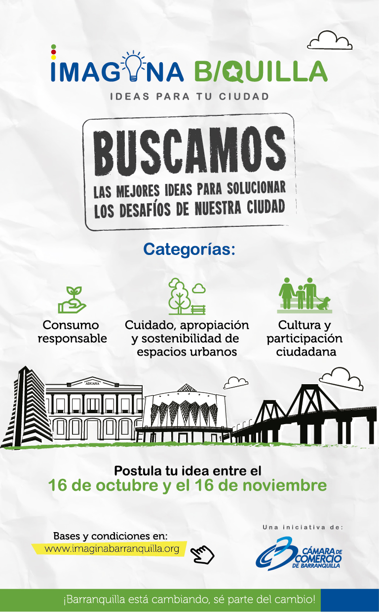 Los interesados en compartir sus ideas para participar en este Desafío, deben diligenciar y enviar el formulario online disponible en www.imaginabarranquilla.org entre el 16 de octubre y el 16 de noviembre. Así mismo pueden consultar las bases y condiciones en ese sitio web.