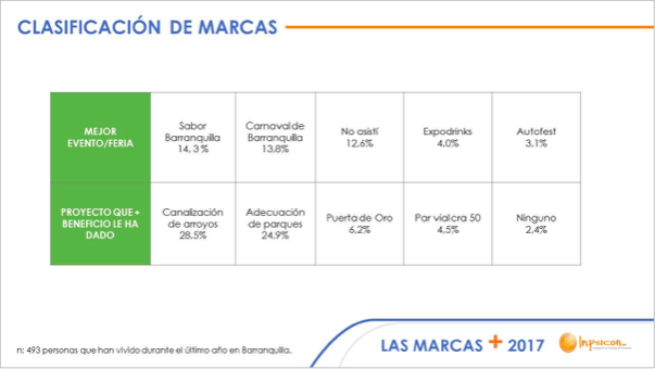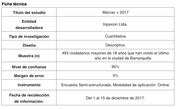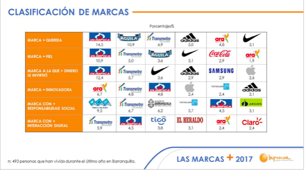 Por quinto año consecutivo, en Inpsicon Ltda. Investigación en Psicología del Consumidor (www.inpsicon.com), realizamos el estudio de Las Marcas + 2017. La investigación tiene como objetivo identificar preferencia y posicionamiento de las marcas (empresas/personas/eventos) en la mente y en el corazón de los barranquilleros.